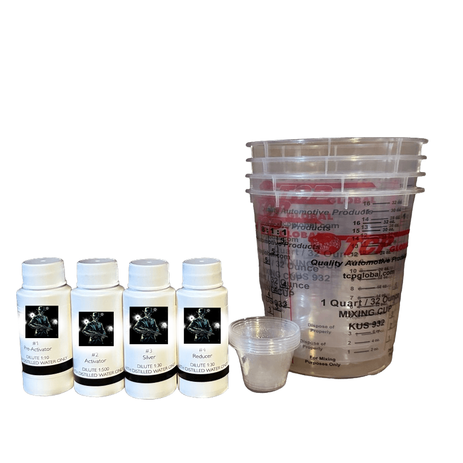 The Chrome Mafia 60 Reload set comes with 60 square feet of all 4 of the spray chrome chemicals. This will make 1/2 gallon of each of the 4 spray chrome chemicals.