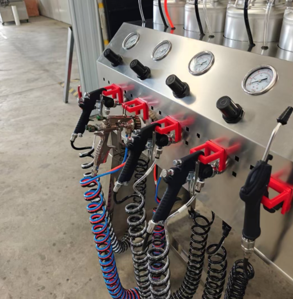 Chrome Mafia’s The Godfather Spray Chrome Machine is the Pinnacle of spray chrome machines! Starting with its super solid 100% stainless steel frame, stainless tanks and guns its a turnkey plug and play system that stores 120 sq ft of material and keeps it fresh for up to 36 hours in sealed heavy gauge pressurized stainless steel storage kegs! Simply plug in to your compressor and chrome anything with ease! Crush any job quickly and easily. If it were any beefier, you could chrome a building!